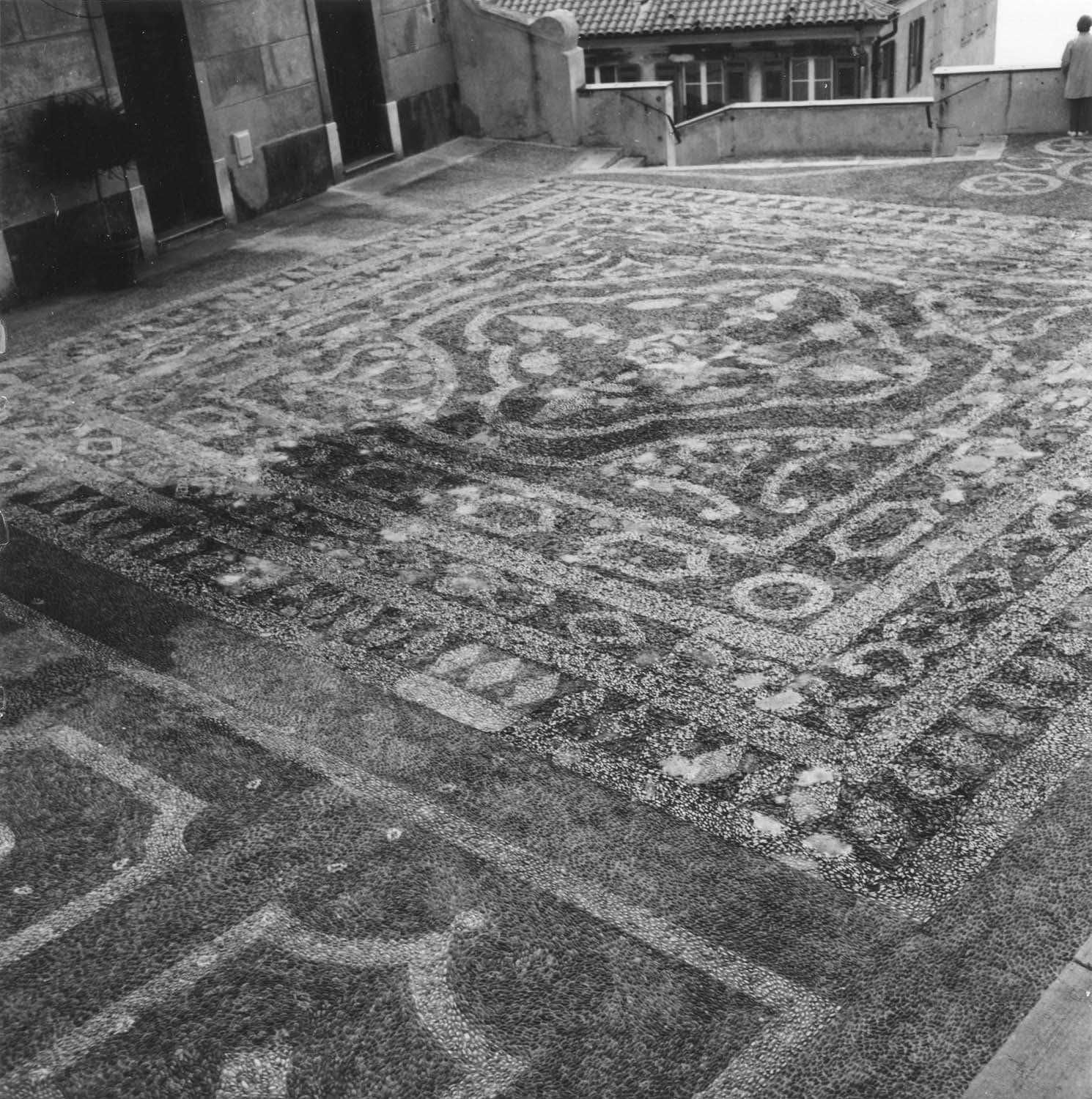 POP | Plateforme ouverte du patrimoineCalade du parvis de l'église. Tapis central en galets bicolores, blancs et gris