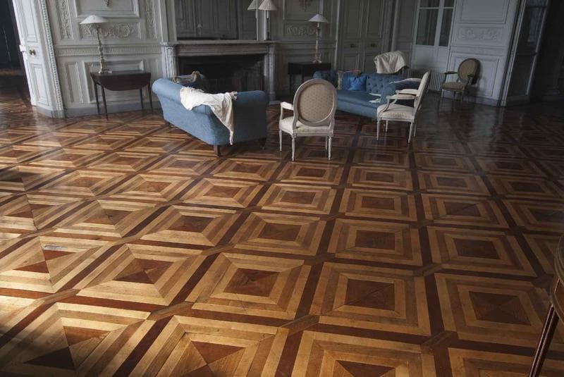 Rez-de-chaussée, grand salon. Vue générale du parquet du grand salon