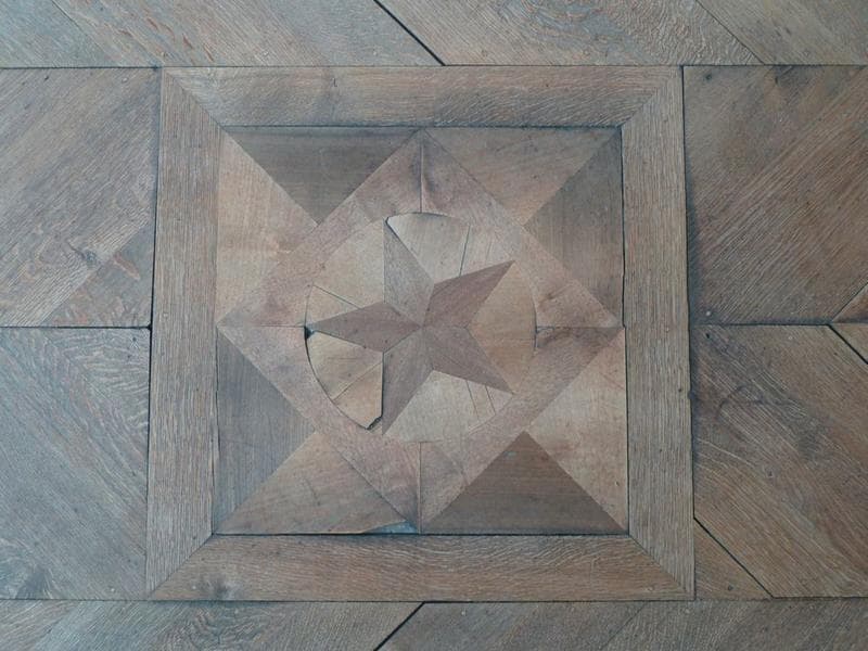 Premier étage au sud. Parquet en points de Hongrie, motif central