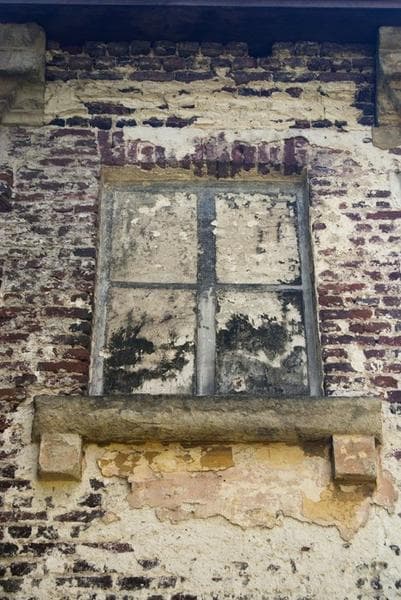 Pavillon est de l'entrée sud. Détail d'une fausse fenêtre