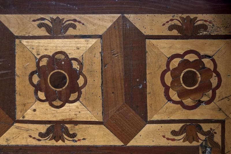 POP | Plateforme ouverte du patrimoineRez-de-chaussée, grand salon. Parquet : détail de la frise côté nord de la cheminée