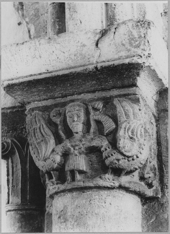 POP | Plateforme ouverte du patrimoineIntérieur, chapiteau de la nef : homme entre deux oiseaux