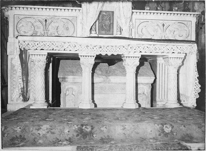 Sarcophage : sarcophage en marbre, placé sous un autel, décor de 2 niches abritant chacune un personnage
