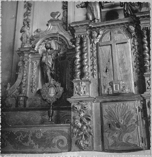 Tabernacle, statue : 'Saint Roch', niche architecturée, bois sculpté, peint, doré