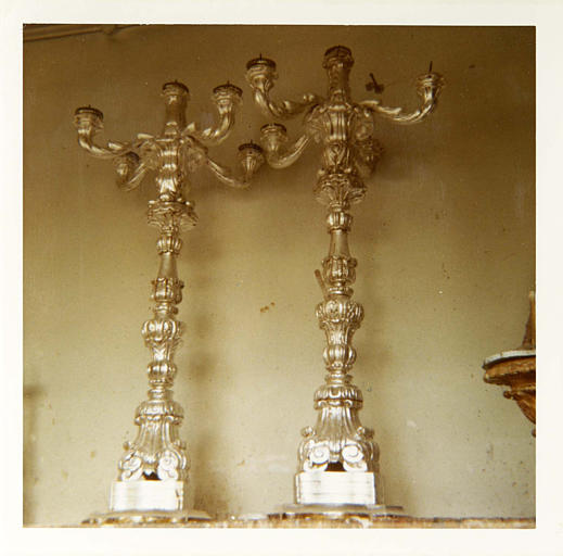POP | Plateforme ouverte du patrimoinePaire de chandeliers à cinq branches, bois sculpté de motifs végétaux, argenté ; après restauration