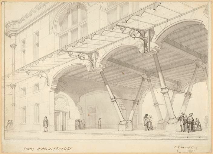 POP | Plateforme ouverte du patrimoineDessin de maçonnerie : marché couvert. Planche XXI des 'Entretiens sur l'Architecture'. Janvier 1865. Inv. 50016