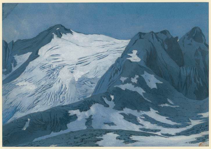 Dessin : Vue du Vignemale prise de la Hourquette d'Ossoue (Hautes-Pyrénées). 4 août 1833. Inv. 4120