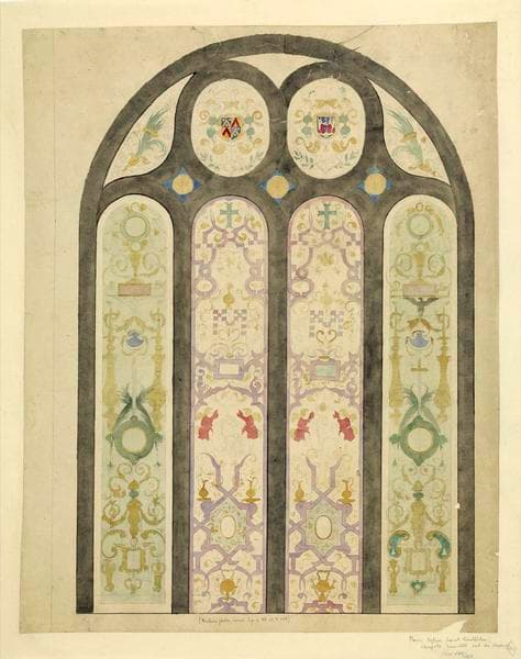POP | Plateforme ouverte du patrimoineDessin : Vitrail, baie de la chapelle bas-coté sud du choeur, vitrail décoratif Agneau mystique