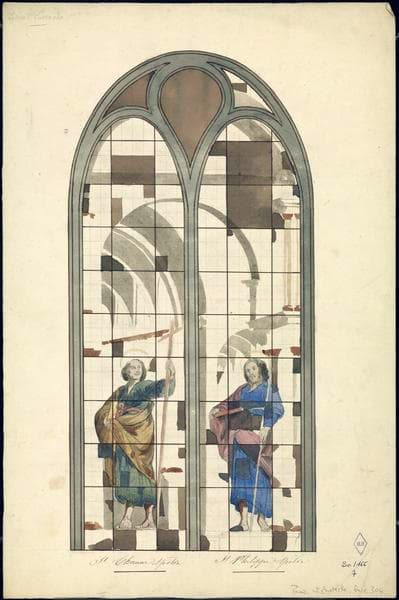 Dessin : Vitrail, baie 306, saintThomas Apôtre, saint Philippe Apôtre