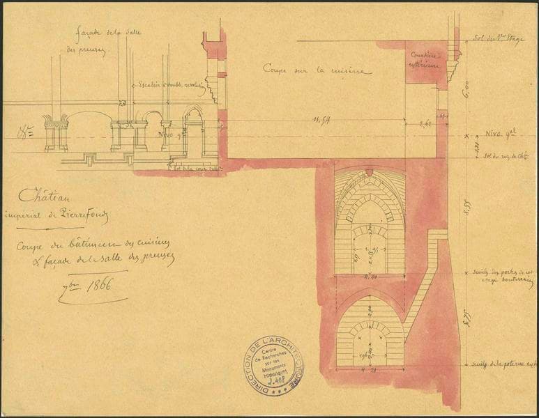 POP | Plateforme ouverte du patrimoineCoupe sur le bâtiment des cuisines, élévation de la façade de l'aile nord-ouest