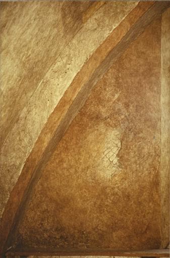 Peinture monumentale : détail de la partie gauche du mur ouest, ailes de l'ange de l'Annonciation (?), peinture sur enduit