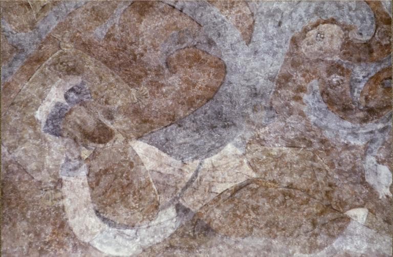 Peinture monumentale : détail d'un élément d'une frise de rinceaux végétaux, peinture sur enduit
