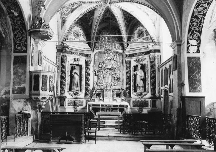 POP | Plateforme ouverte du patrimoineVue du choeur avec le retable et la chaire à prêcher, bois sculpté, peint, doré