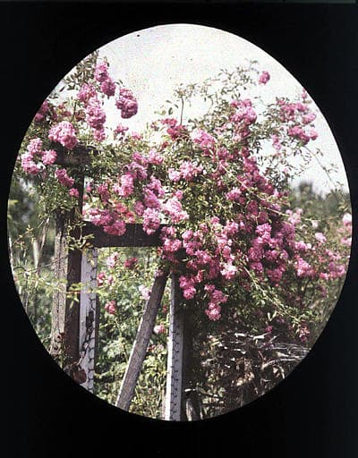 Arbuste en fleurs près de Trianon, vue en forme de médaillon