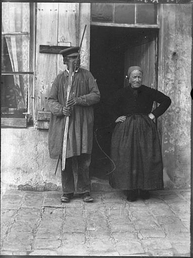 POP | Plateforme ouverte du patrimoineCouple de paysans devant une porte de ferme