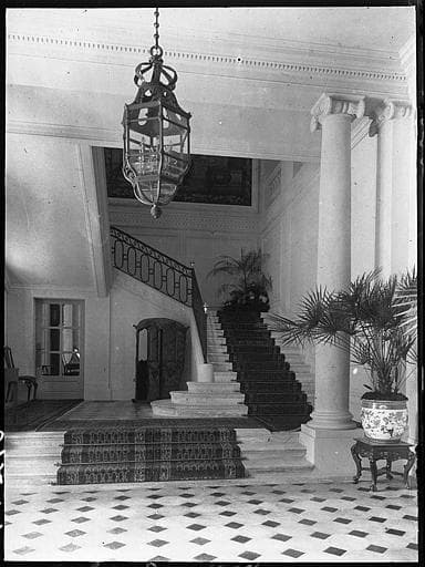 POP | Plateforme ouverte du patrimoineIntérieur : escalier à rambarde et décoration de l'entrée