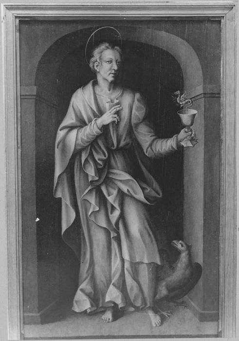 Panneau peint dit panneaux Fliche : revers, saint Jean l'Évangéliste, après restauration (1974)