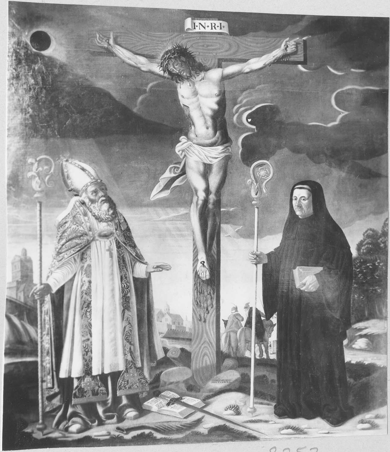tableau : Le Christ en croix entre saint Polycarpe et saint Benoît