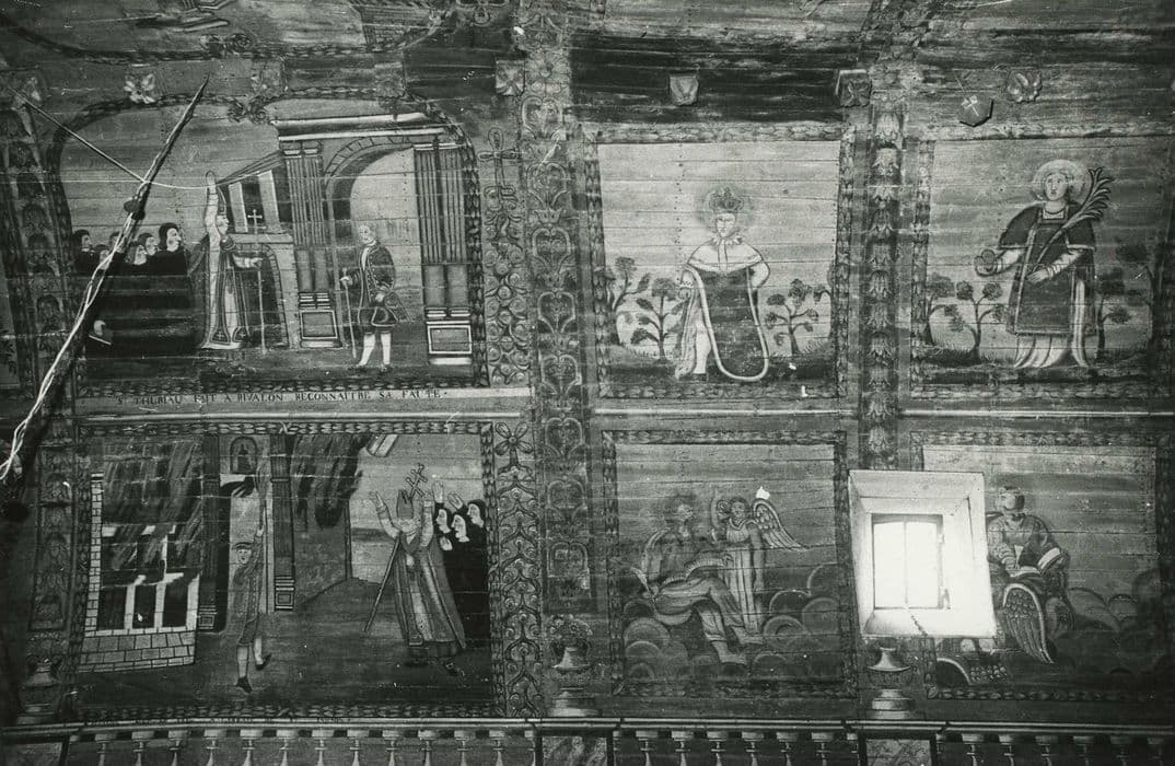 Eglise Saint-Thuriau : Voûte lambrissée peinte, vue partielle