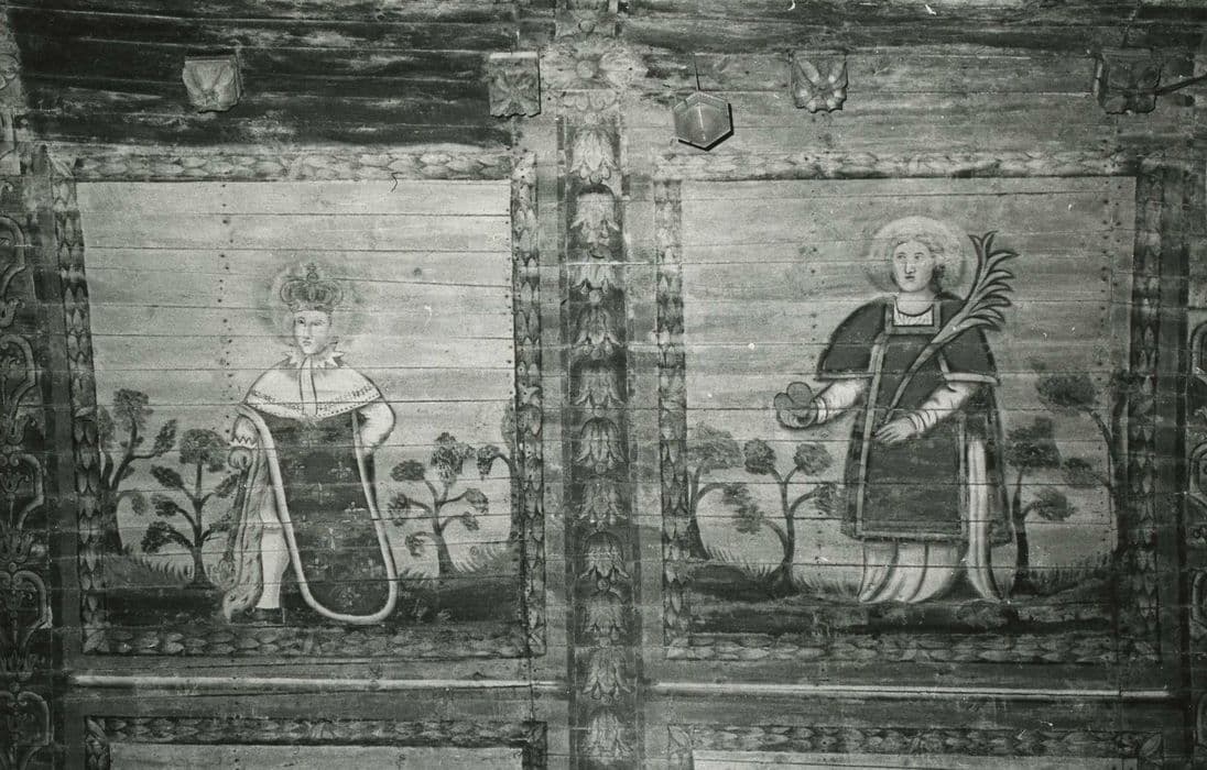 POP | Plateforme ouverte du patrimoineEglise Saint-Thuriau : Voûte lambrissée peinte, représentation de Jésus de Prague et de saint Etienne