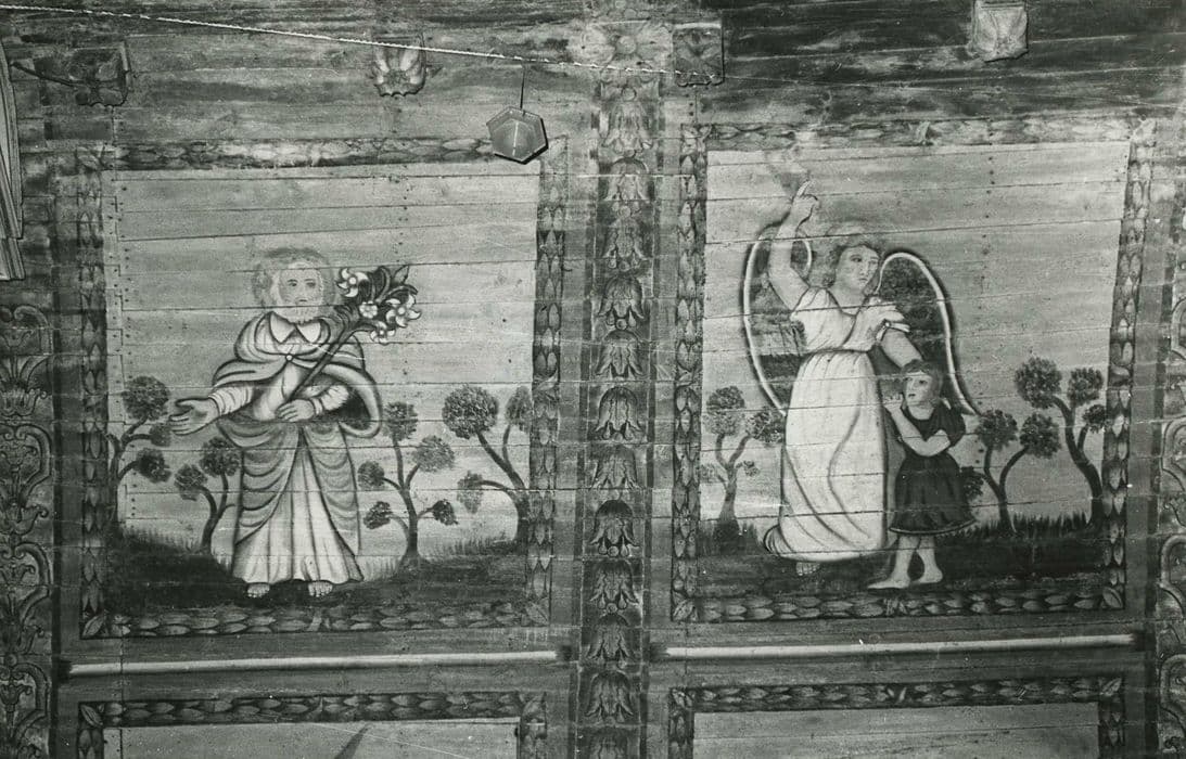 POP | Plateforme ouverte du patrimoineEglise Saint-Thuriau : Voûte lambrissée peinte, représentation de l’ange gardien et d’un saint non identifié