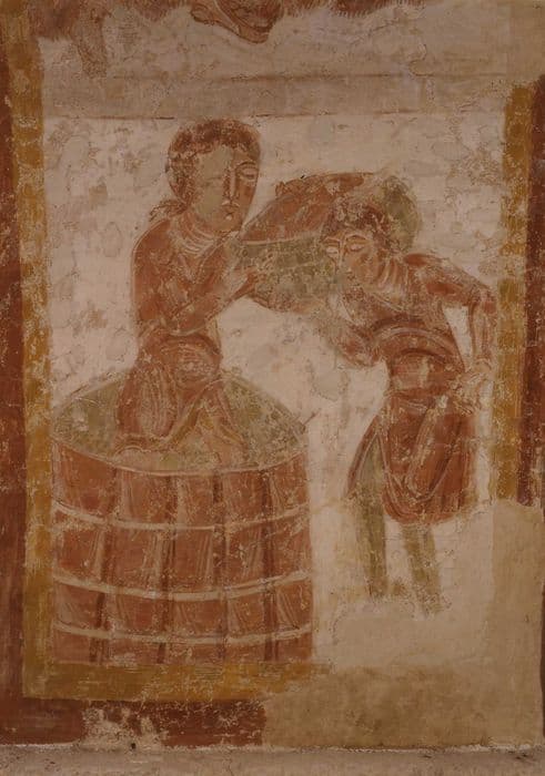 Eglise Saint-Germain : Peintures monumentales, arc triomphal, intrados, détail du calendrier des champs (mois de septembre)