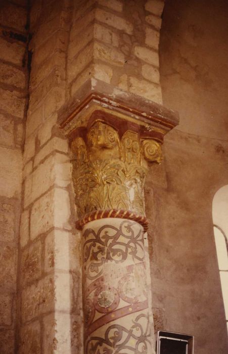 POP | Plateforme ouverte du patrimoineEglise Saint-Germain : Peintures monumentales, nef, détail du chapiteau de la demi-colonne adossée au mur nord