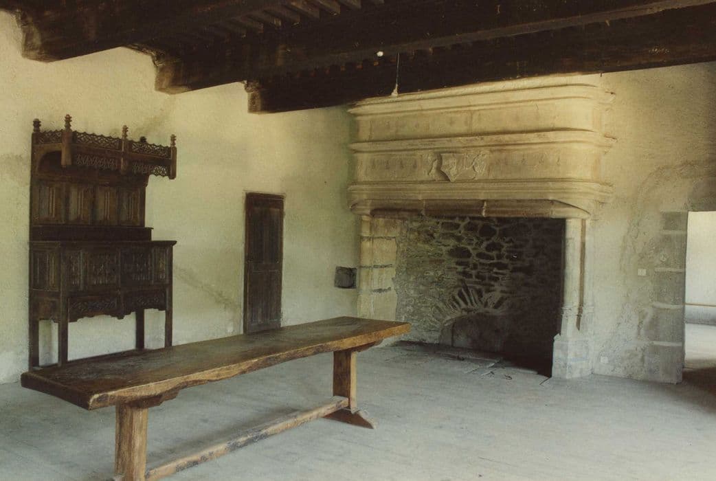 Château fort de Vieillevie : 1er étage, grande salle, cheminée monumentale, vue générale
