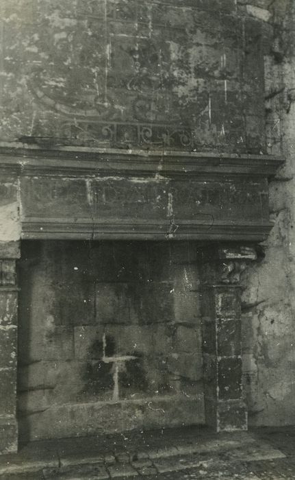 Château : Donjon, 1er étage, cheminée monumentale, vue générale