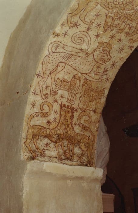 Eglise de l'Assomption : Intrados de l’arcade nord, 2e travée de la nef, peinture monumentale, détail