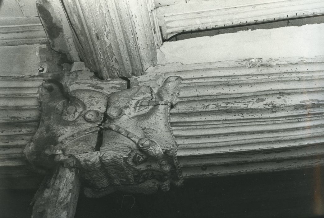 POP | Plateforme ouverte du patrimoinePrieuré de la Magdeleine (ancien) : Rez-de-chaussée, grande salle, détail d’une poutre sculptée