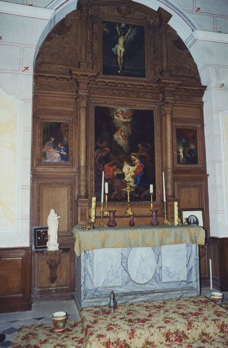 Château de Layé : Chapelle, tour d’angle nord-ouest, vue générale du retable du maître-autel