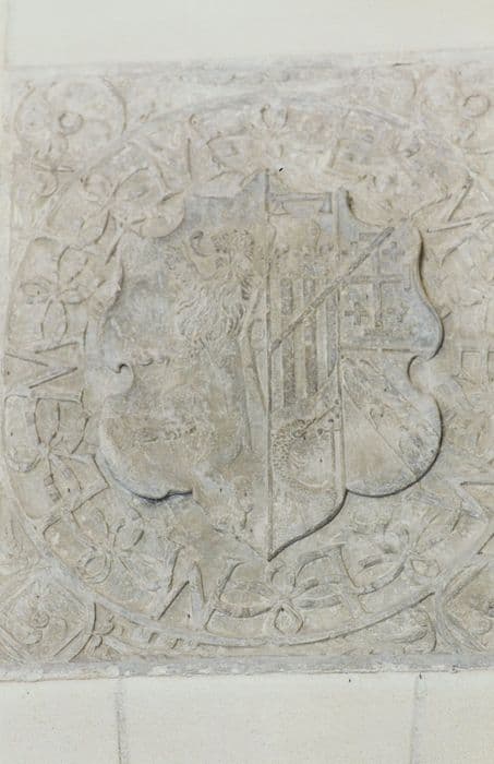 Château de Bellenaves : Logis, vestibule, détail d’une pierre armoriée