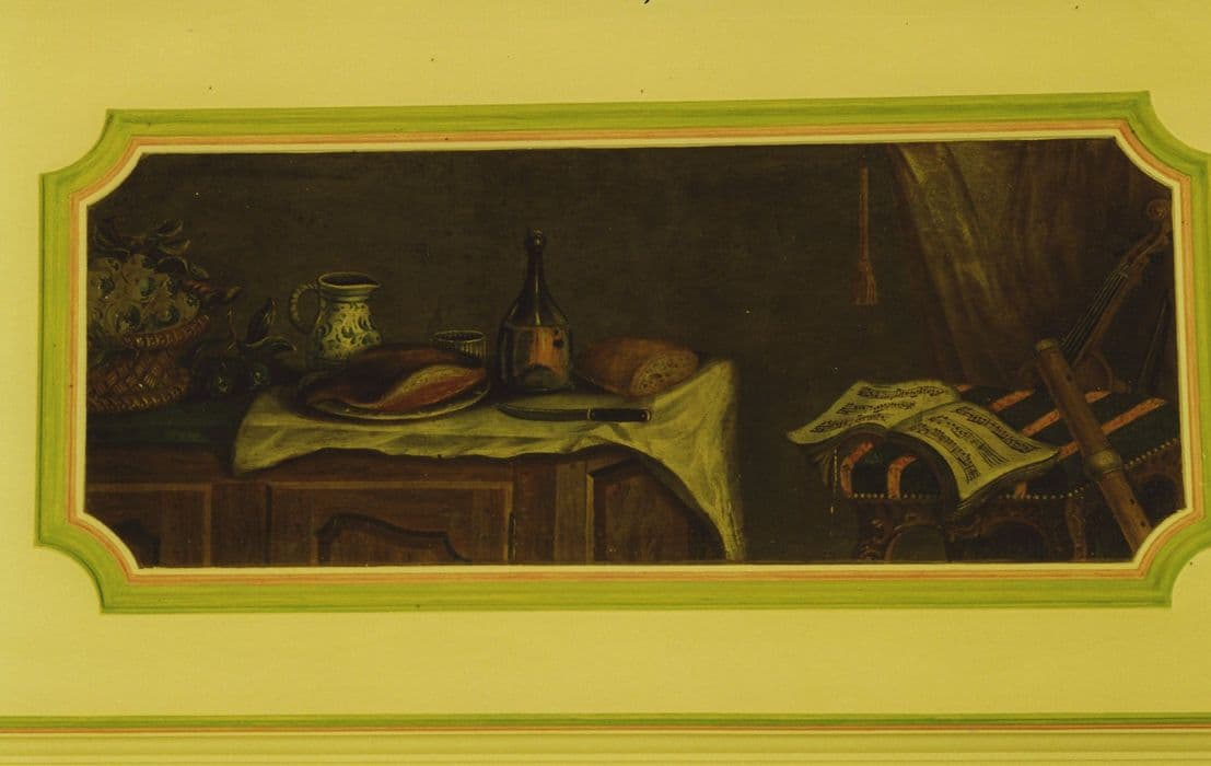 POP | Plateforme ouverte du patrimoineChâteau de Bellenaves : Logis, rez-de-chaussée, salle à manger, détail d’un dessus-de-porte