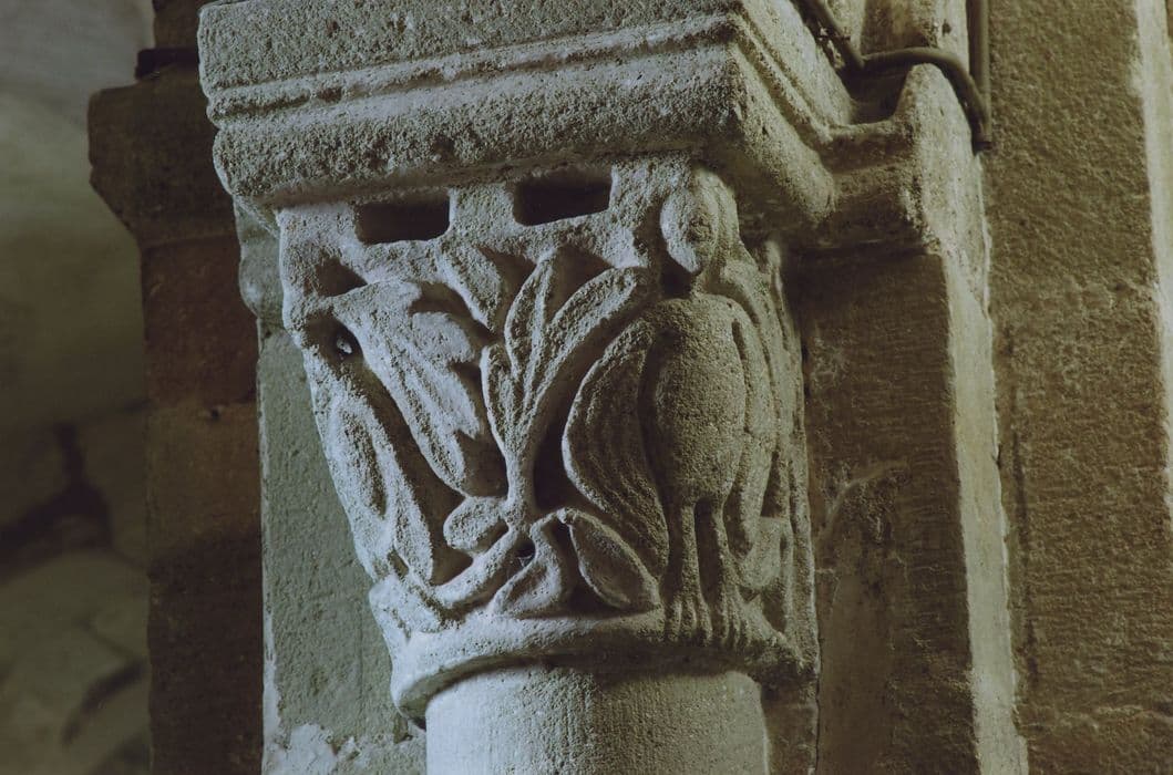 Eglise Saint-Laurent : Nef, détail d’un chapiteau sculpté