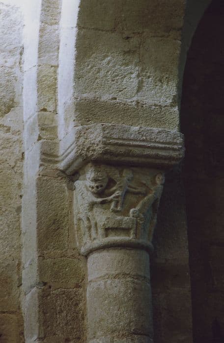 Eglise Saint-Laurent : Nef, détail d’un chapiteau sculpté