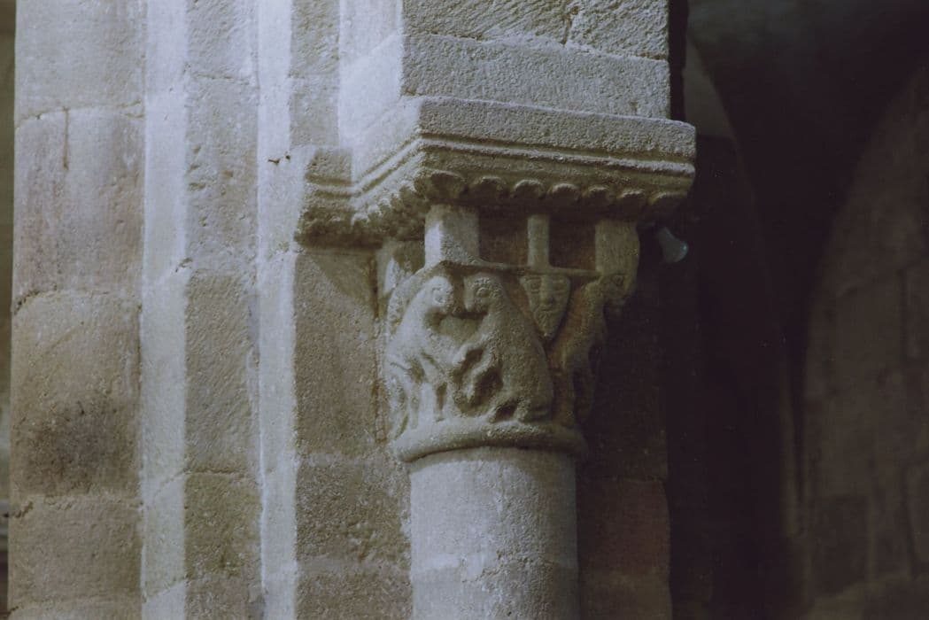 Eglise Saint-Laurent : Nef, détail d’un chapiteau sculpté