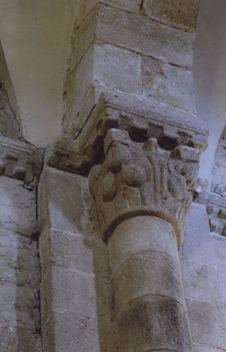 Eglise Saint-Laurent : Nef, détail d’un chapiteau sculpté