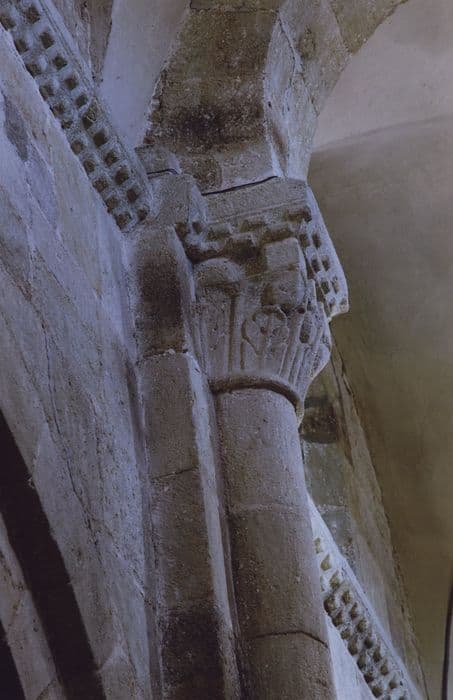 Eglise Saint-Laurent : Nef, détail d’un chapiteau sculpté