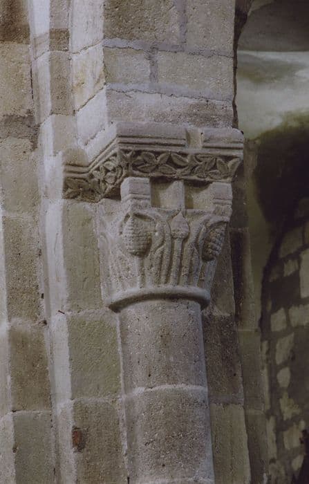 Eglise Saint-Laurent : Nef, détail d’un chapiteau sculpté