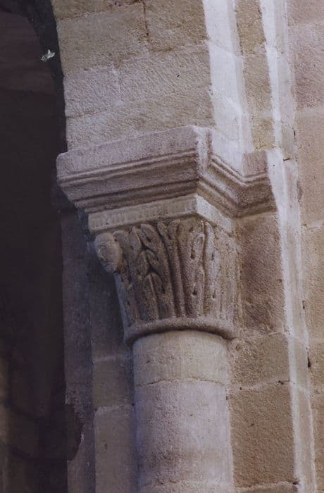 Eglise Saint-Laurent : Nef, détail d’un chapiteau sculpté