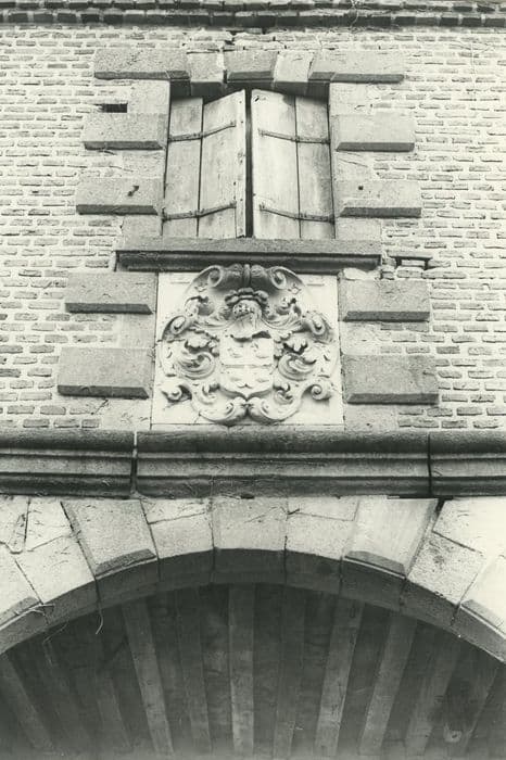 Domaine de Chaugy : Porterie, élévation est, détail du blason sculpté