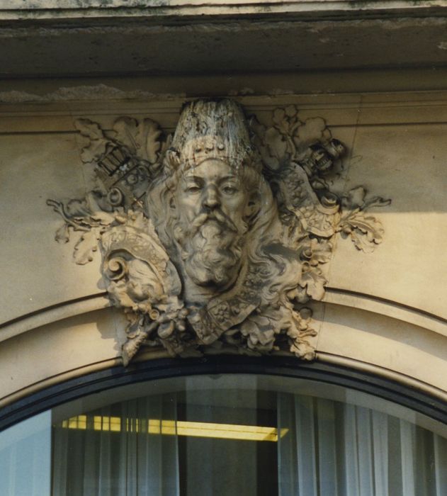 POP | Plateforme ouverte du patrimoineImmeuble : Façade sur la rue Galilée, détail d’un mascaron du 1er niveau