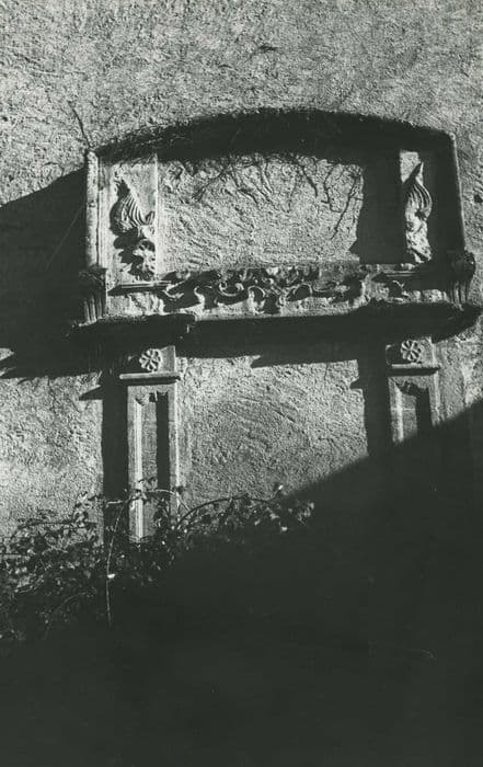 Château du Vieux-Bost : Chapelle, éléments sculptés décoratifs réemployés (cheminée?), vue partielle
