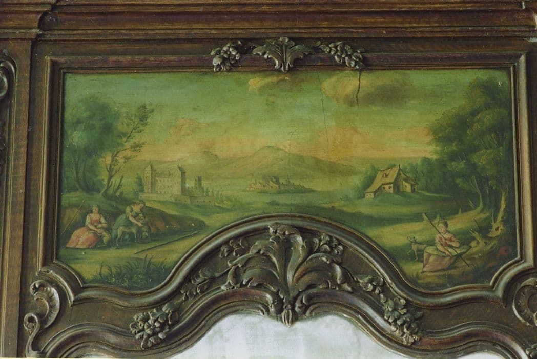 Château de Fontnoble : Rez-de-chaussée, salle à manger, cheminée, détail du trumeau