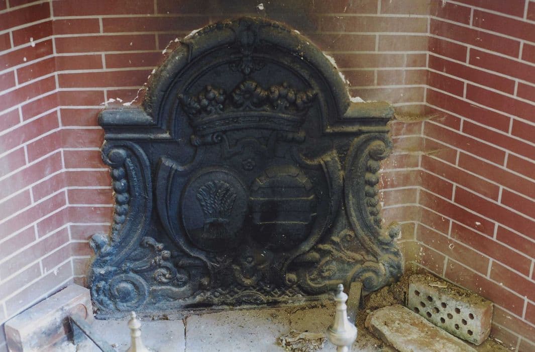 Château de Fontnoble : Rez-de-chaussée, salon, détail de la plaque de cheminée