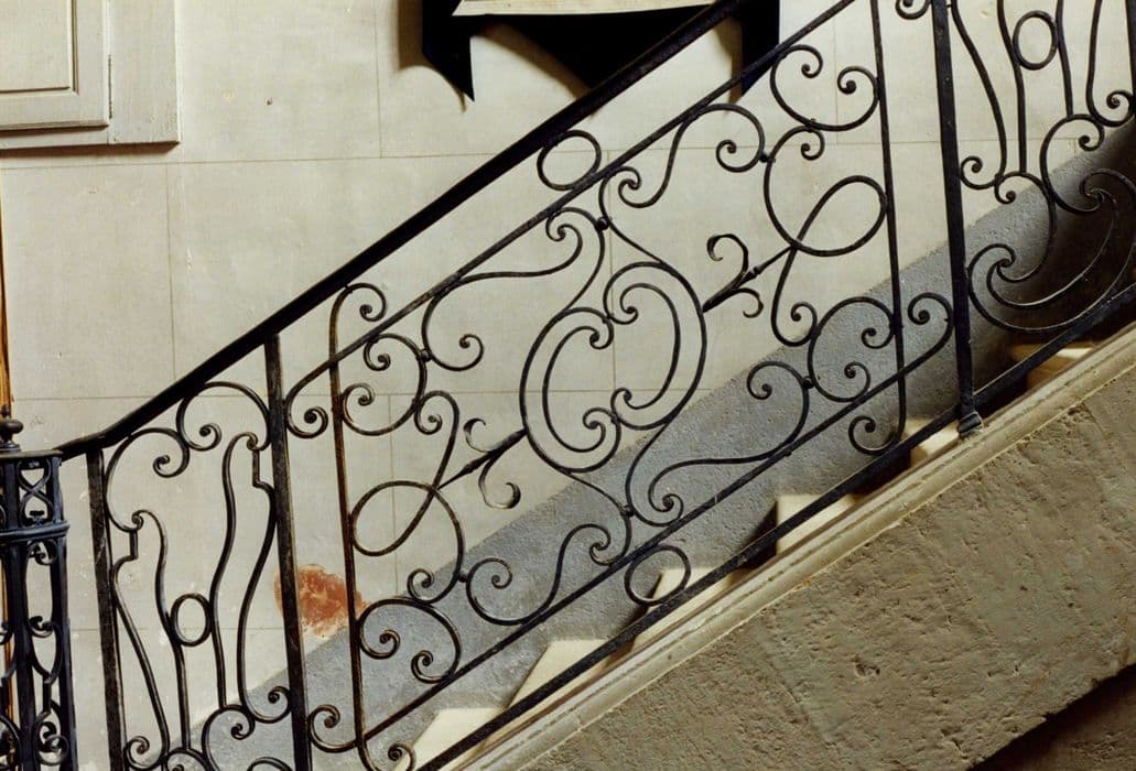 escalier d’honneur de l’aile nord, détail de la rampe en fer forgée