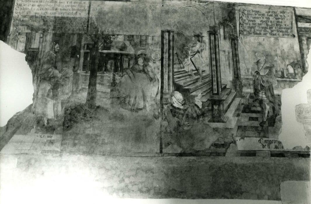 galerie desservant le 1er étage du second corps de logis, peintures monumentales, détail
