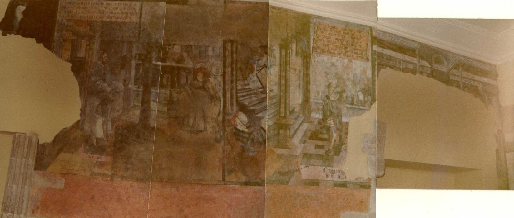 galerie desservant le 1er étage du second corps de logis, peintures monumentales, détail