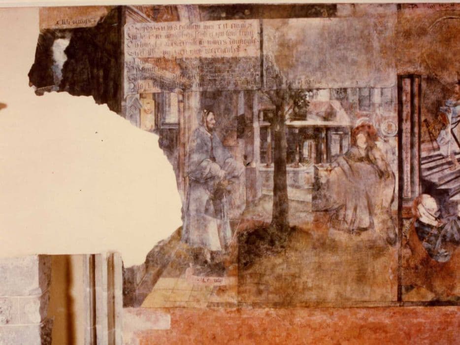 galerie desservant le 1er étage du second corps de logis, peintures monumentales, détail